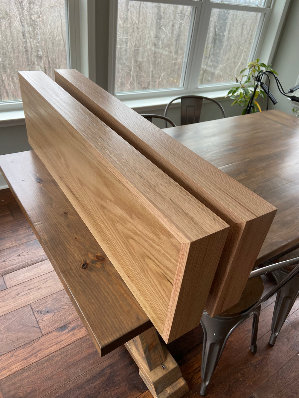 Handmade farmhouse floating shelves crafted from natural wood. Custom stains, sizes, and finishes available. Built strong, installed easily, and shipped nationwide — perfect for any room that deserves a touch of warmth.